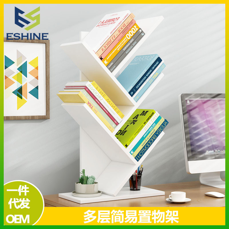 クロスボーダーの木の本棚の多層の簡易な着地の魚の骨の小さい本棚の学生の寝室の物置台のデスクトップの収納棚