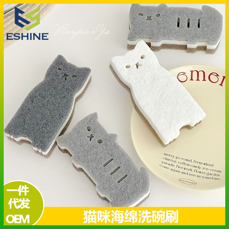 かわいい猫のスポンジは家庭の台所を拭き、メロンの清潔さを真似て油を拭き、食器を洗って雑巾を拭きます