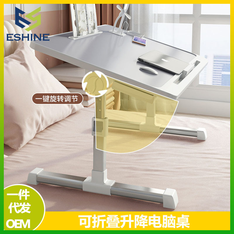 ベッドの上の小さいテーブルはコンピュータの机を昇降することができます。