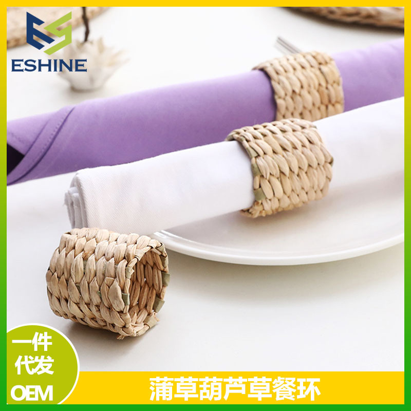 クロスボーダー草編み食事リング蒲草編みナプキンボタン草編み洋食リングホテル手織りナプキンリングティッシュリング