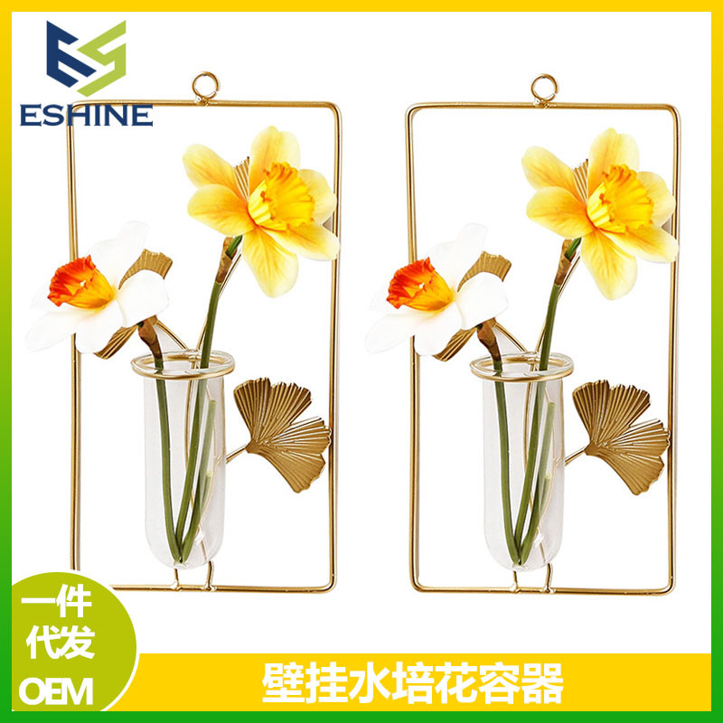 国境を越えた壁掛け壁面水培ガラス試験管花瓶二重吊り式緑植生け花シンプル壁面装飾品