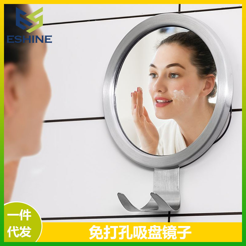 浴室化粧鏡穴なし壁掛け吸盤鏡アルミ合金フック付きホテル民宿円形化粧鏡