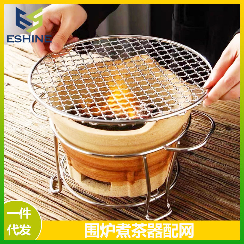 囲炉煮茶円形屋外炭焼き網蒸し網太円形焼き網屋外使い捨て焼き網
