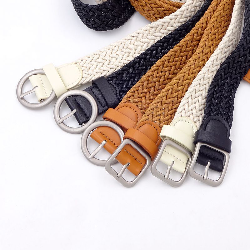 女性の韓国版の蝋紐のベルトは丸いボタンを編んで復古します。