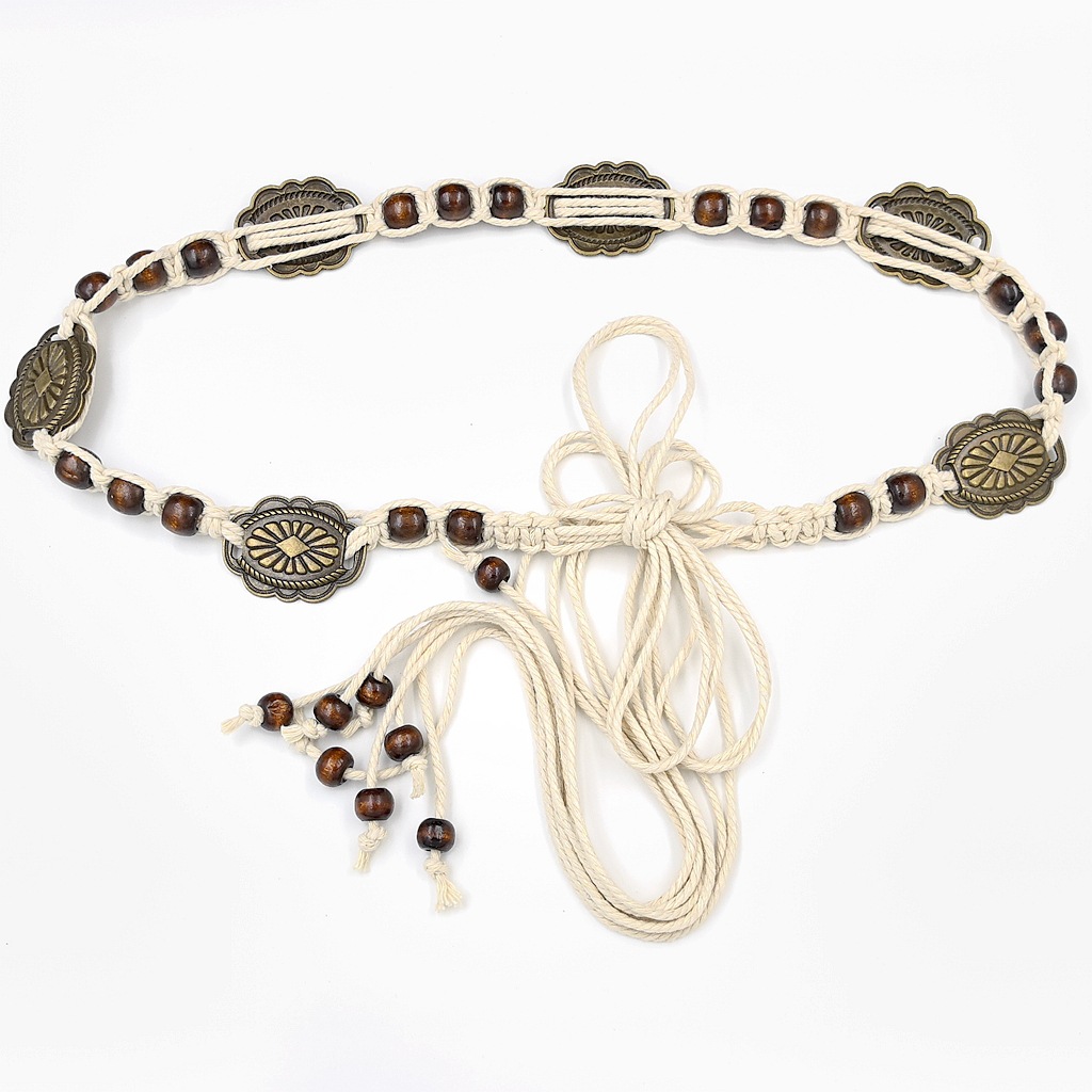 ボヘミアン手織りビーズガールズベルトレトロアクセサリー多用途ウエストチェーンジーンズベルト