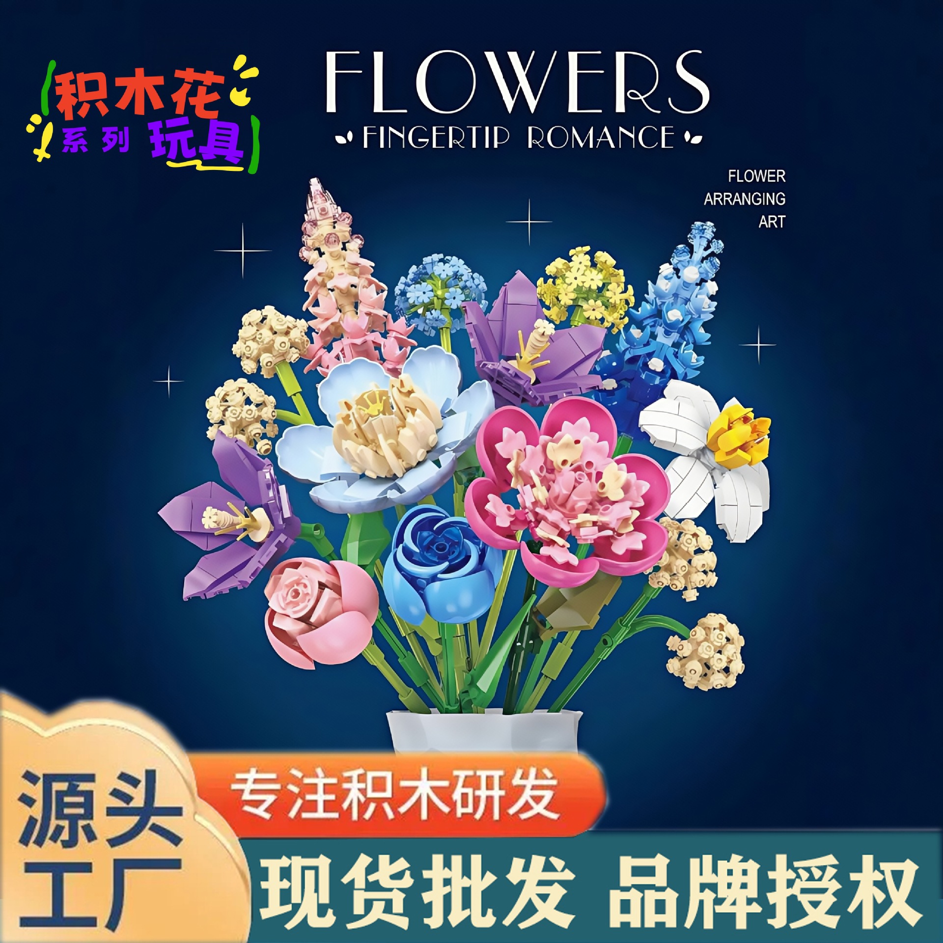 模擬ビルディングブロックフラワーシリーズ組み立てられた小粒子おもちゃ DIY 花束デスク装飾品子供の知育玩具メーカー