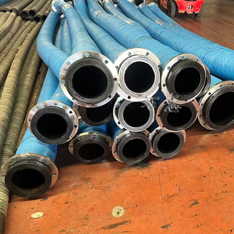 大口径排水汚水ホース8インチ10インチ内蔵鋼線骨格吸引泥ホース両端炭素鋼フランジ付き