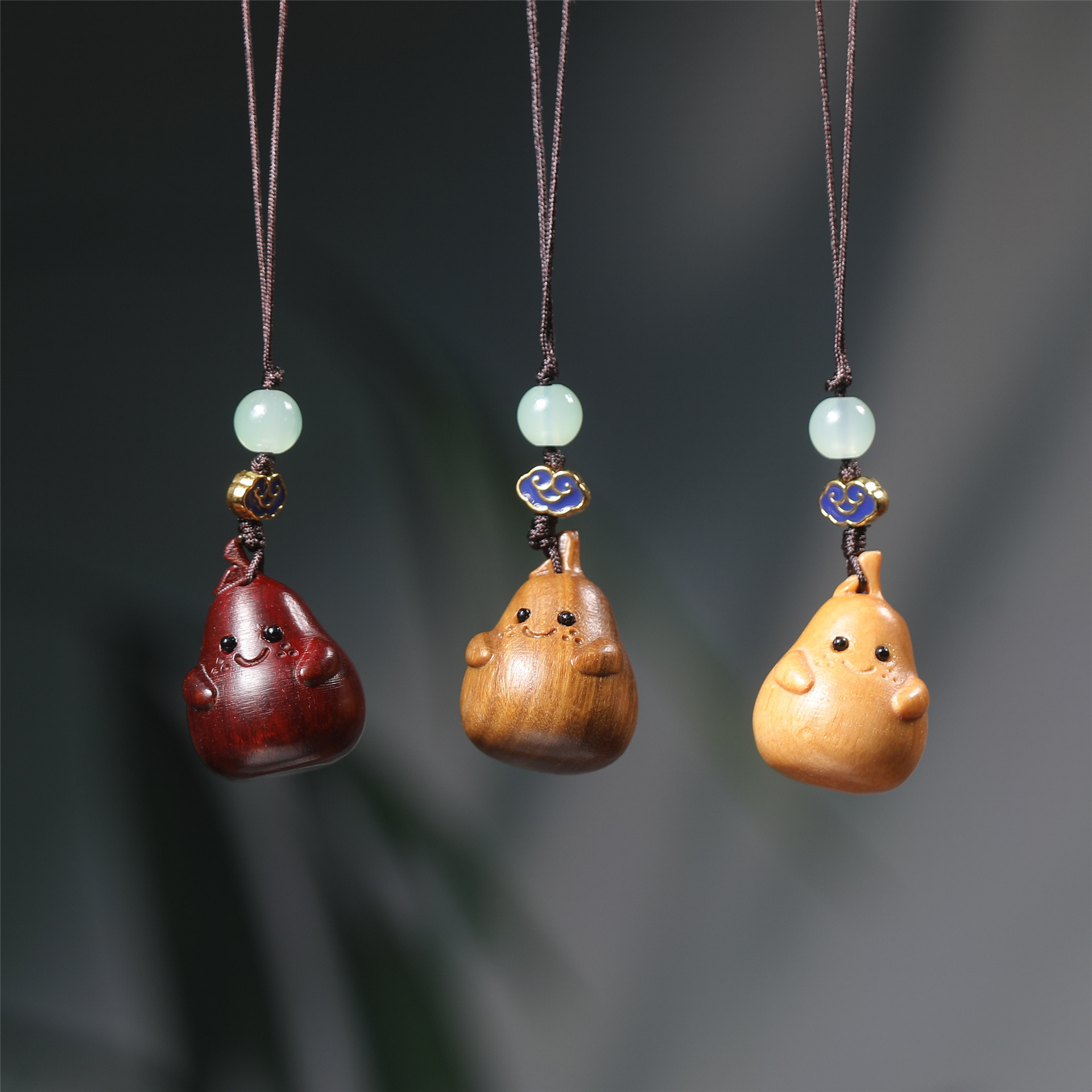 夜光石蓮花香袋 レトロ風 緑檀花梨木彫り 携帯電話/車/バッグ用ペンダント 工場卸売 ハンドメイド