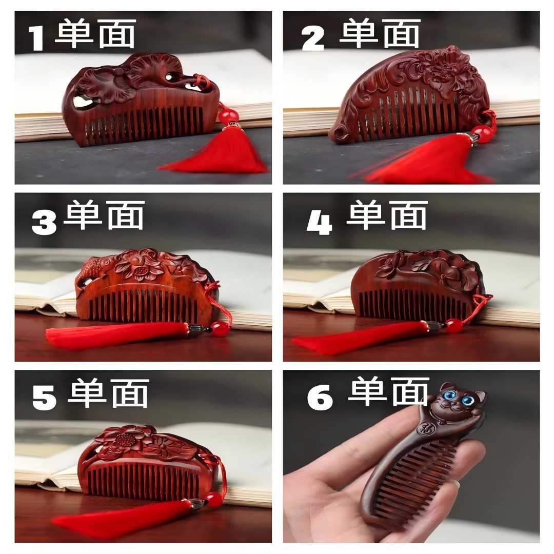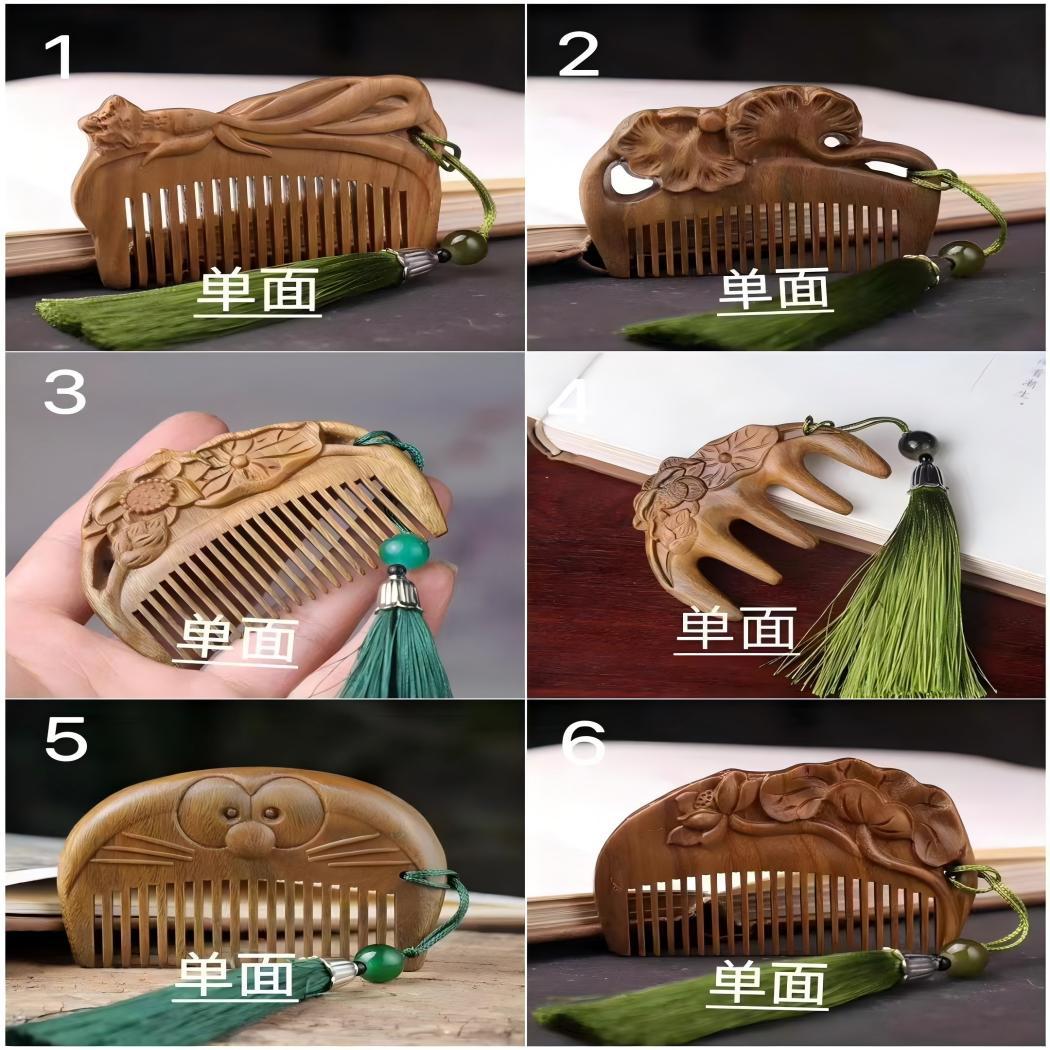 女性用両面彫刻木櫛厚手の歯抜き防止櫛多機能頭部経絡檀木櫛卸売り