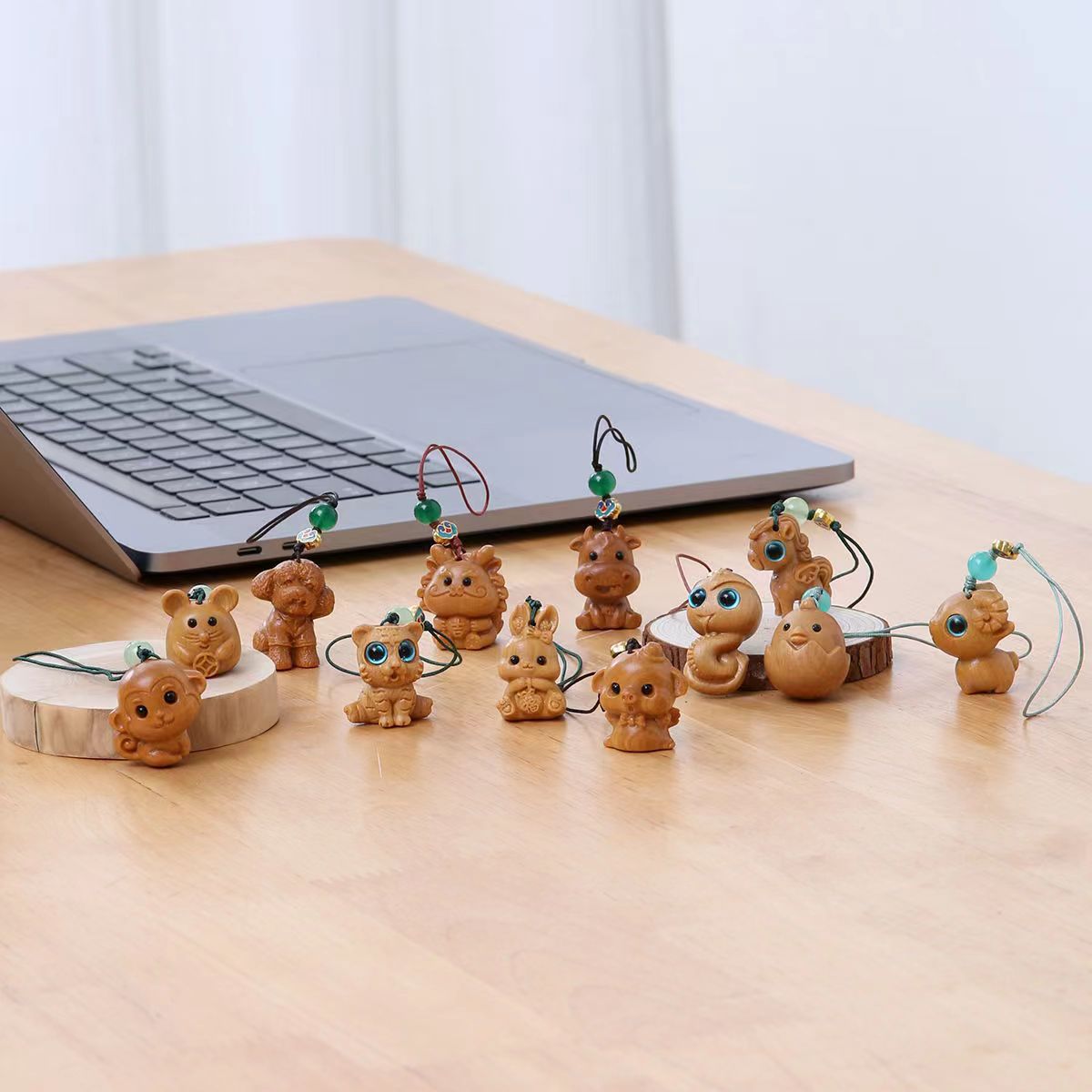 十二生肖崖柏かわいい木彫りキーホルダーファッションシンプルなストラップ携帯電話ストラップ卸売り