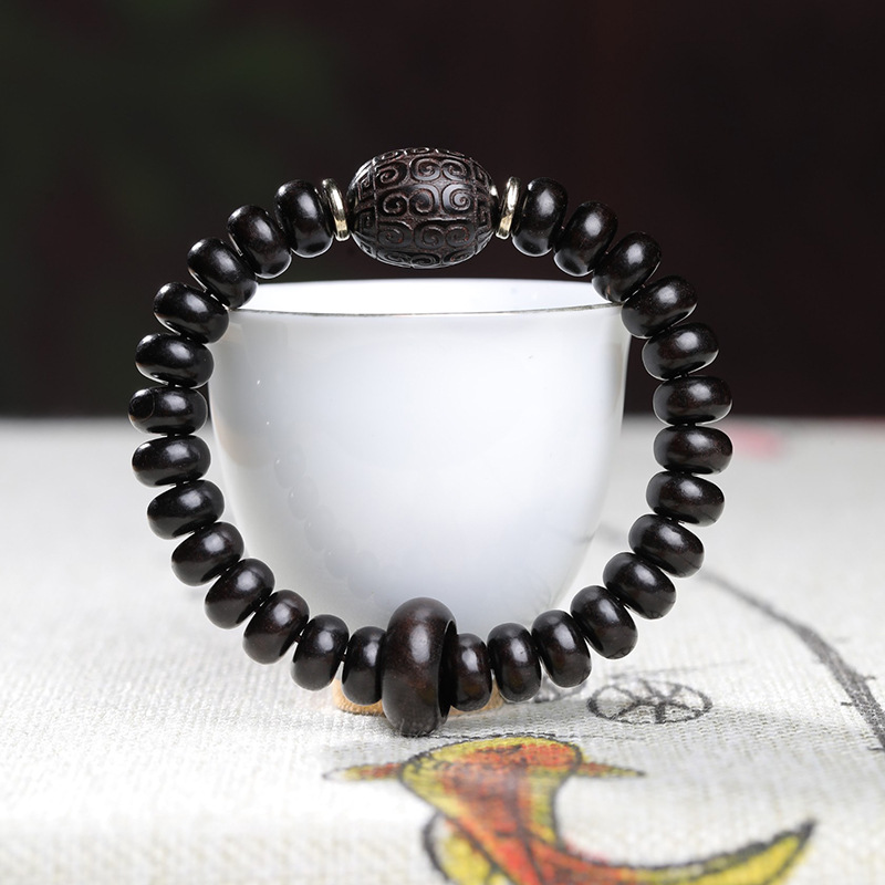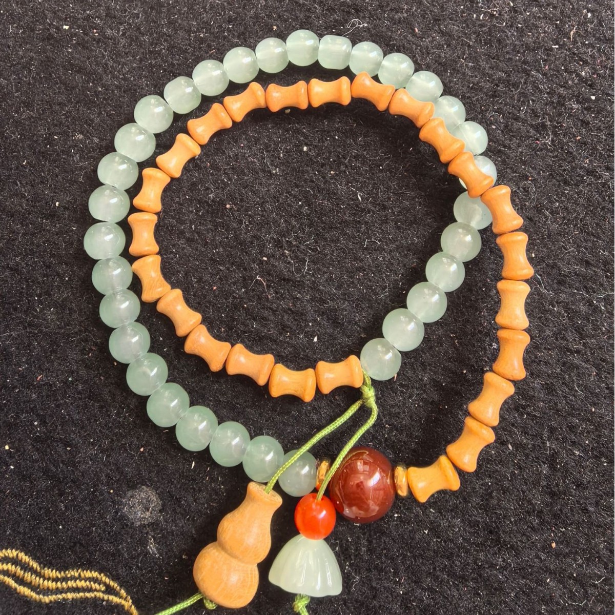 緑檀木手串竹節檀香木寿山石双輪手串ブレスレット節高昇女金文遊び数珠
