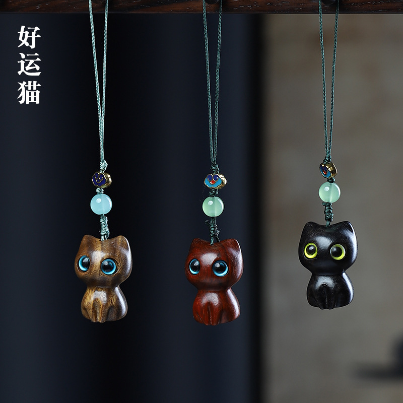 新品黒檀紫檀緑檀彫刻子猫ストラップハンド部品文遊びペンダントバッグアクセサリー卸売り