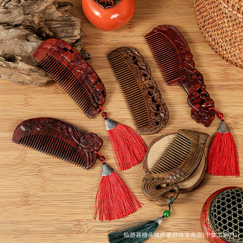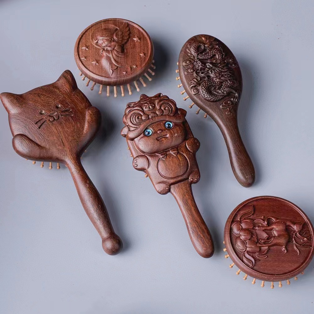 新型黒金檀木エアマット櫛彫刻アニメ動物エアマット順髪櫛部経絡マッサージ櫛卸売り