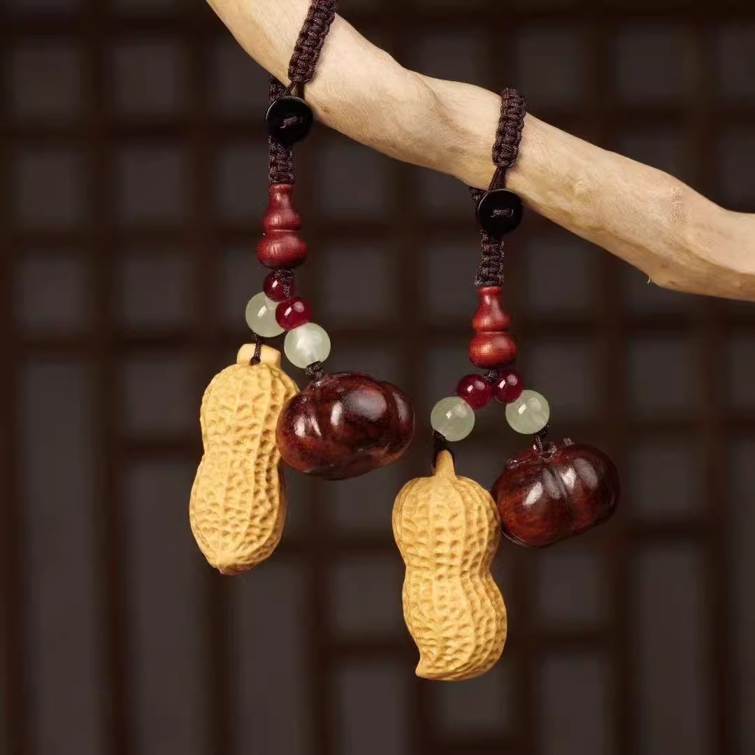 新商品檀黄金檀紫檀良いことピーナッツ万事如意木雕柿アイデアシンプル编みキーホルダー