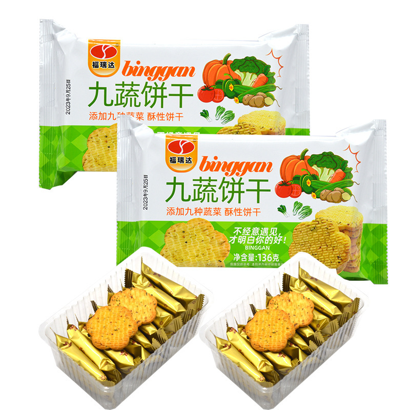 福瑞達-九野菜ビスケットに9種類の野菜ショートニングビスケットを加えたカジュアルな携帯ビスケット136グラム/バッグ