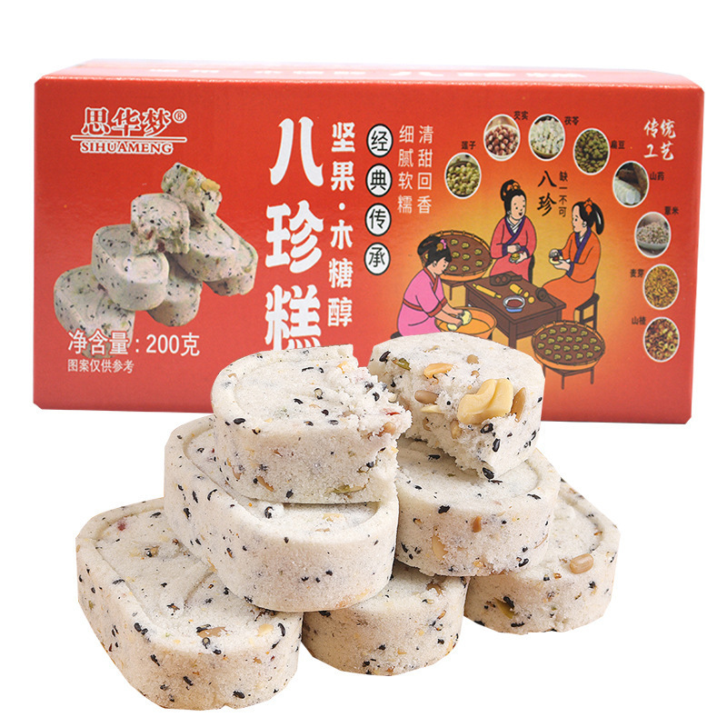 思華夢-キシリトールナッツ八珍餅オニバス実山薬ハトムギ黒ゴマ餅200グラム/箱