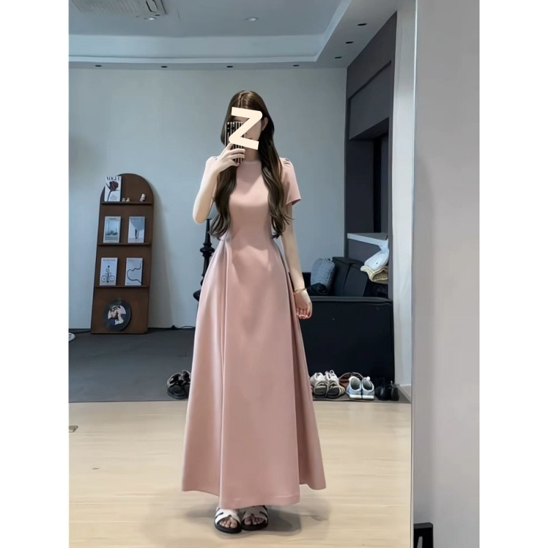 女性のためのレトロなロングスカート夏のウエスト痩身ハイエンド気質ファッショナブルなシンプルな無地のスーツドレス女性のための 9011