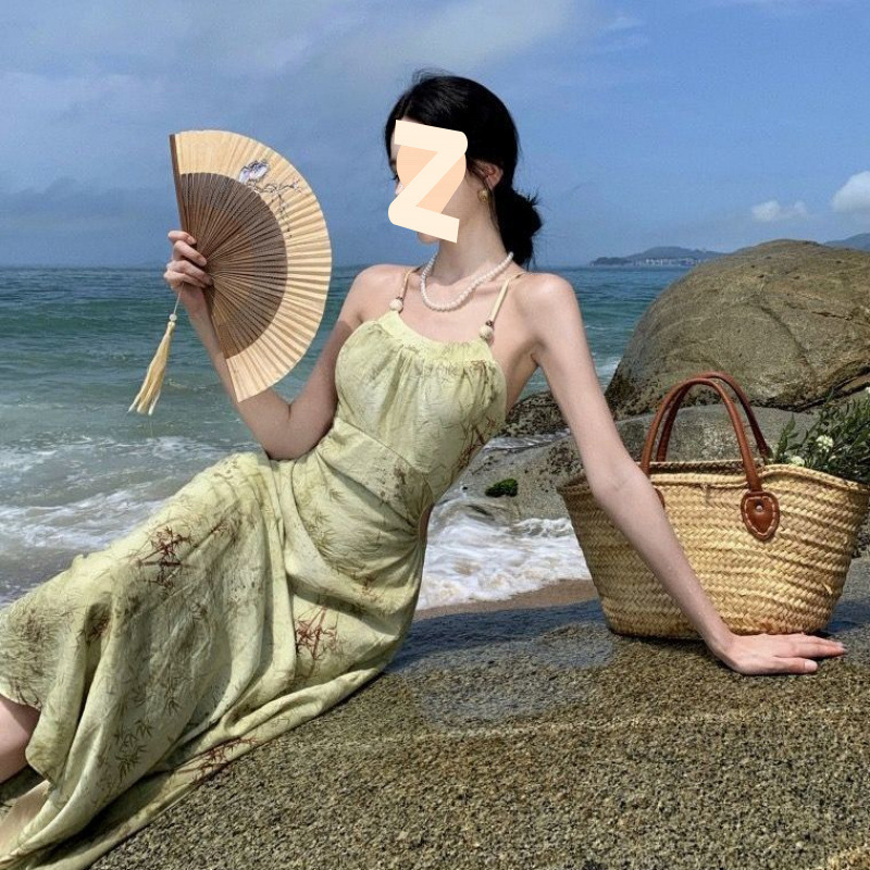 ホルターネックドレス、海辺の雰囲気のスカート、新しい中国風のドレス、古代風の要素の服、洋梨型の体型の着用