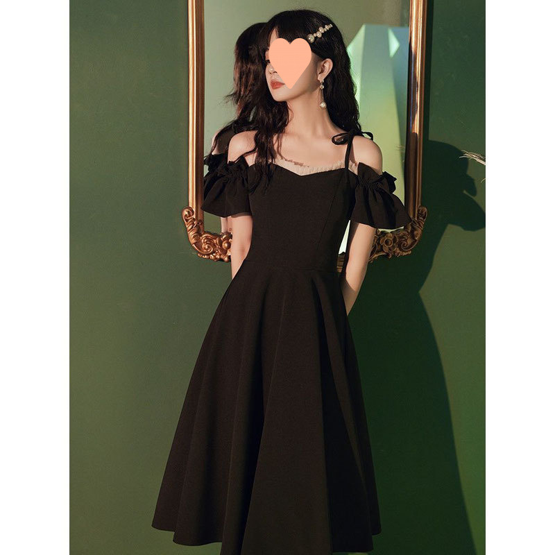 セレブのエレガントなワンショルダーリトルブラックドレス 2025 新しいヘボンスタイルフレンチレトロハイウエストドレス女性の夏