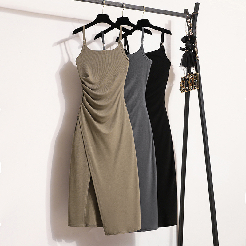プラスサイズの女性の夏の新しいスリムサスペンダードレス女性のアウターウェア不規則なスリットウエストボトリングスカート