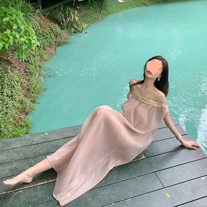 ハイエンドフレンチワンショルダースパンコールチューブトップドレス女性の夏のデザイン怠惰なスタイルの休暇ドレス妖精のドレス