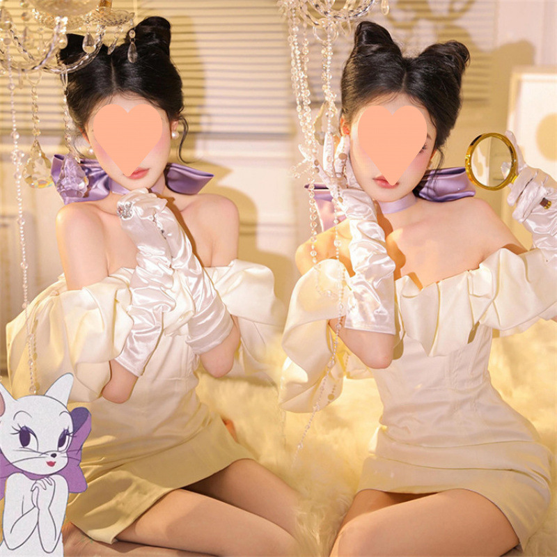 フォトスタジオの新しいトムキャットテーマの誕生日純粋な欲望スタイルのフレンチワンショルダードレス雰囲気写真撮影服