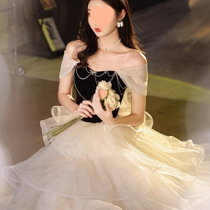 女性用フレンチイブニングドレス、ハイエンドセレブの誕生日、ハイエンドライトラグジュアリーニッチ、ワンショルダー、スーパーフェアリー卒業大人芸術試験