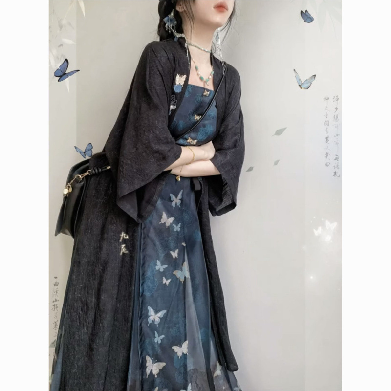プラスサイズの漢服ファットmm 100kg 刺繍入り宋半袖刺繍ロングシャツ改良カーディガン新しい中国風デイリーサマー