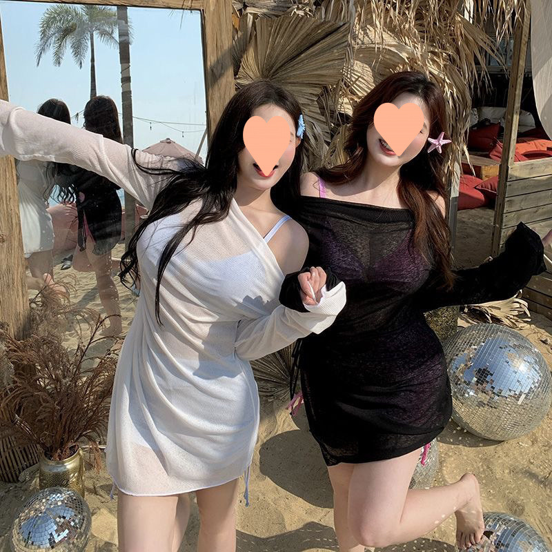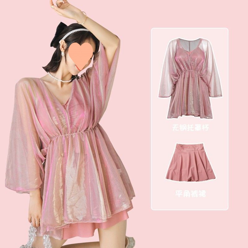 プラスサイズの純粋な欲望のセクシーなビキニスリーピーススプリット水着女性の長袖カバーアップビーチ休暇水着