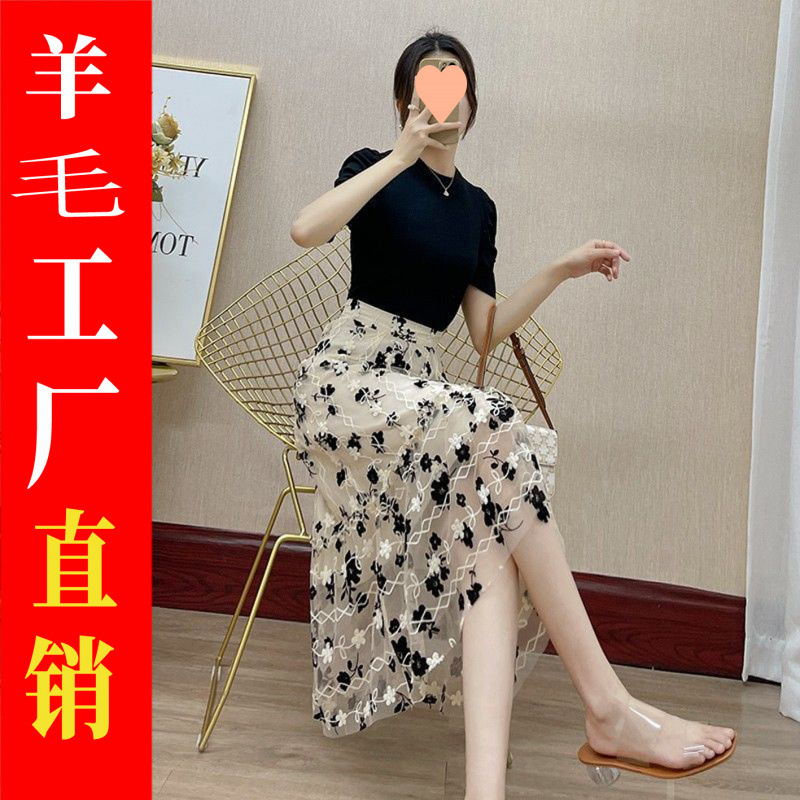 新しい夏のスカート、気質トップス、刺繍入り花柄スカート、夏のハイウエストスカート、2点セット、人気スタイル