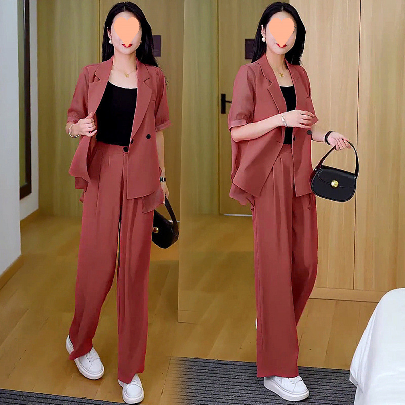 女性のための薄い半袖スーツ 2025 夏の新しいファッション気質ルーズカジュアル西洋スタイルスーツ 2 点セット