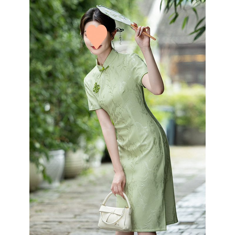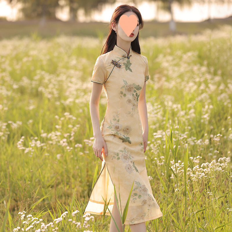 チャイナドレス 2025 新作春レトロ中国風ミドル丈スリムヤングスタイル改良ドレス女性夏