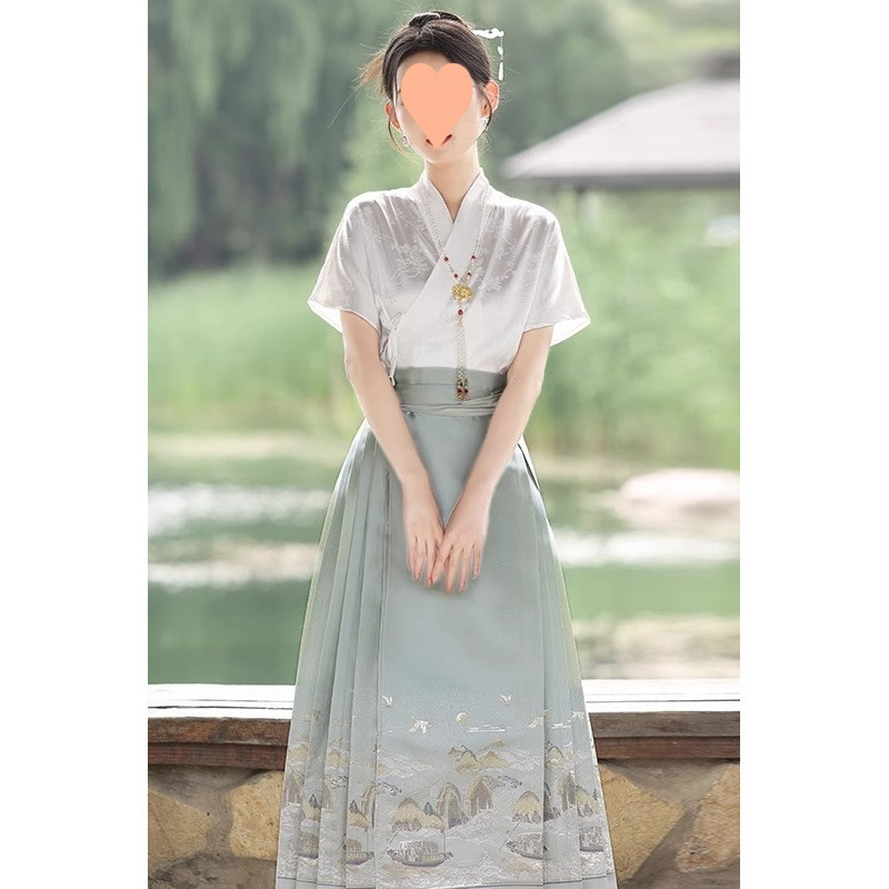 プラスサイズファットmm新中国風明馬面スカートスーツジャカードシャツスーパー妖精国民風女性の夏の漢服100kg