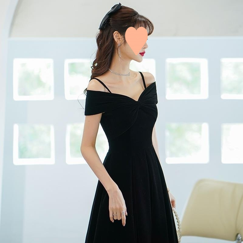 女性のためのワンショルダー年次総会イブニングドレス 2025 新しい黒ホスト社交界の気質ニッチライト高級ハイエンド女性