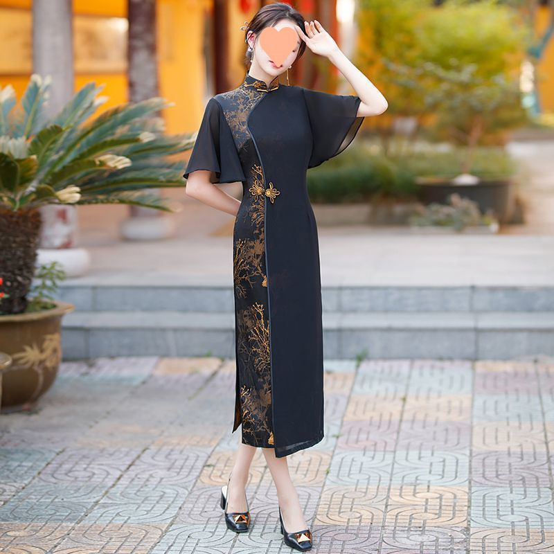 2025 新チャイナドレス中国風レトロ改良されたロング若い夏の気質ドレススリムデイリーナショナルスタイル