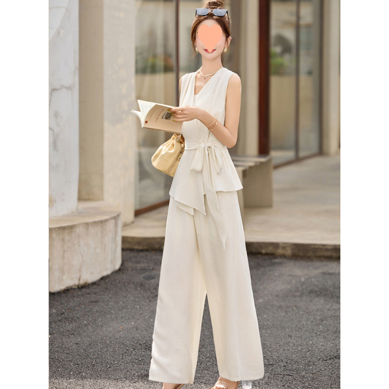 セレブライト高級ドレススーツ女性 2025 夏の新日常着カジュアルファッション気質ワイドレッグパンツ 2 点セット