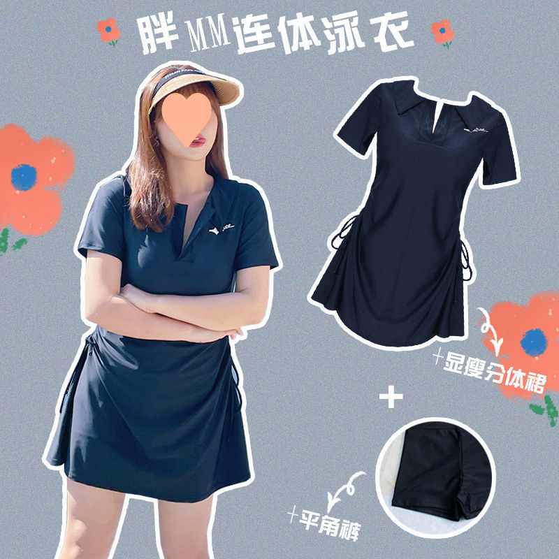 プラスサイズ水着女性ファットmm 100kg お腹カバー痩身スポーツスプリットスカート風温泉半袖2025新スタイル