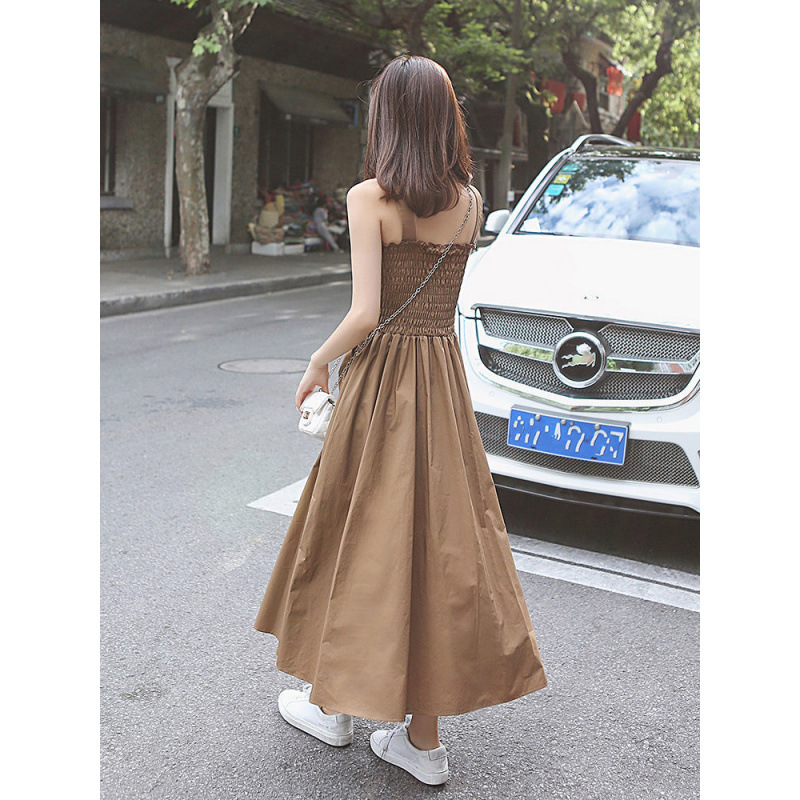 サスペンダードレス女性のための 2025 夏の新しい気質妖精スカートワンショルダーサスペンダースカートフレンチミドル丈スカート