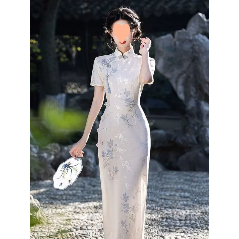 美しいチャイナドレス、新しい中国風の婚約、日常着、2025年の新しいハイエンドの気質プリント、若い女の子向けに改良されました