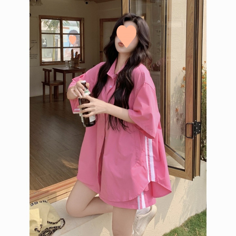 ファットMM特大サイズ150kgファッショナブルなカジュアルスーツ女性の夏のルーズスリムストライプシャツショーツ2点セット