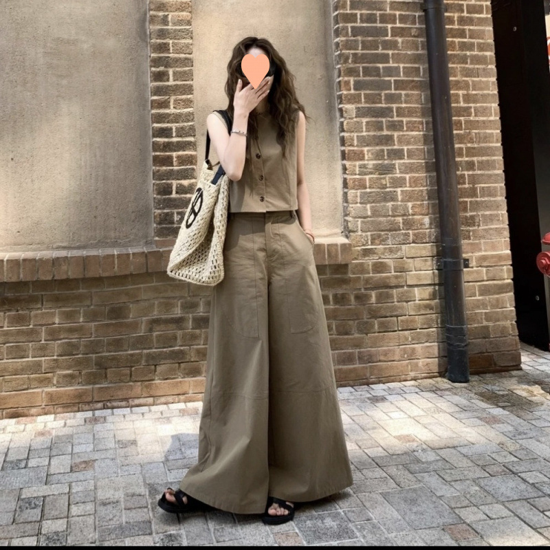ノースリーブスーツドレストップ夏の新しいカジュアルワイドレッグパンツベストドレスツーピーススーツ