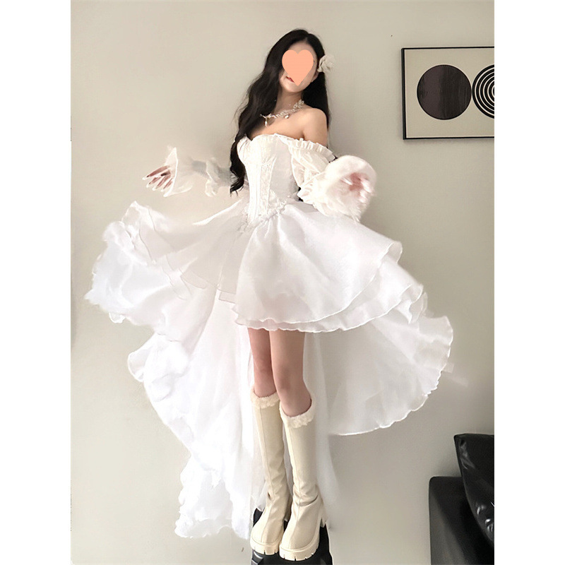 気質、ファッショナブルでハイエンドのプリンセスニッチフィッシュテールスカート春の新作ワンショルダースタイル
