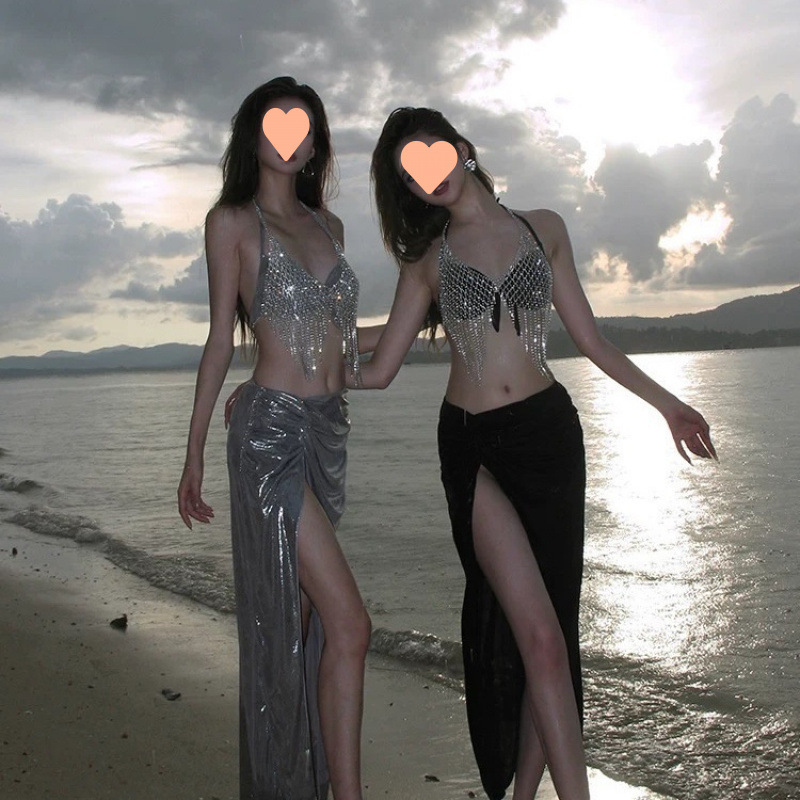 Isulde 2025 新しいセクシーなビキニギャラクシースプリット 4 ピース水着小さな胸ロングスカート水着プッシュアップ
