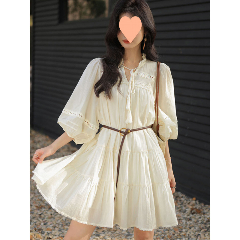 リゾートスタイルのフレンチスタイルの小さなシックなショートスカート、美しいレースアップシャツ、ボヘミアンドレス、女性の夏の気質