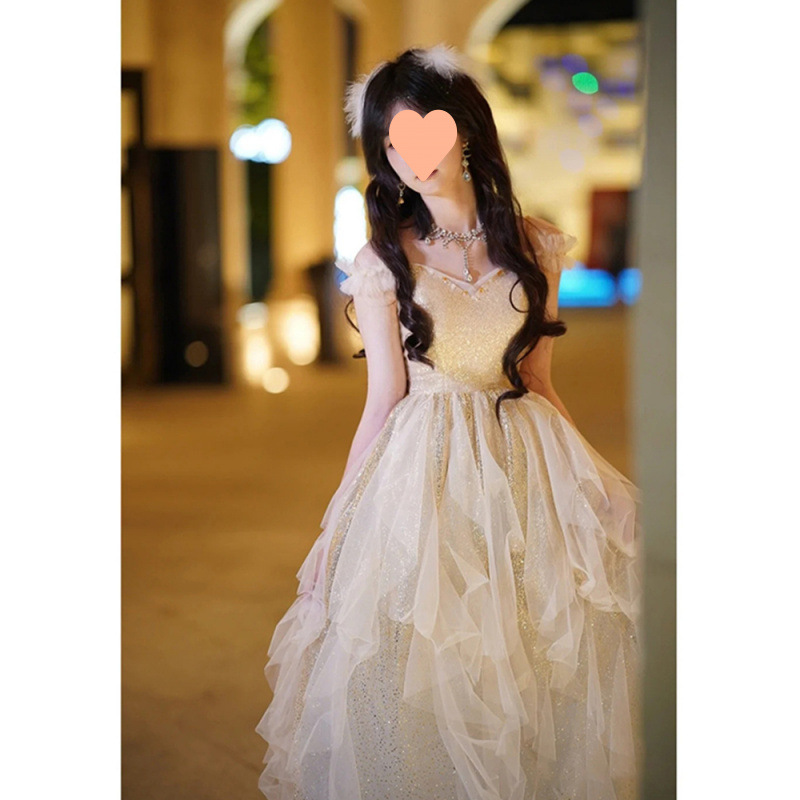 女性用イブニングドレス 2025 新年会宴会気質スーパー妖精 18 歳大人サスペンダーワンショルダードレス芸術試験