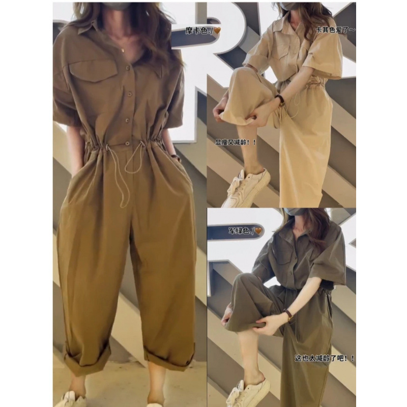 2025 春の新デザインストリートウエスト作業服ジャンプスーツ女性の韓国スタイル年齢軽減ストレートジャンプスーツパンツ