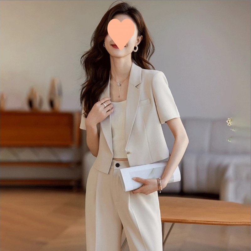 プロフェッショナルスーツ女性の夏薄い 2025 新しいハイエンドショートスタイル半袖スーツ