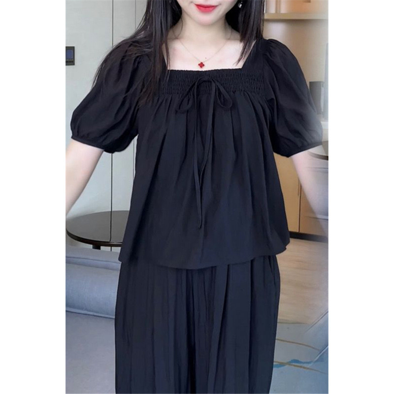 女性のためのファッショナブルでカジュアルなプラスサイズのスーツ 2025 夏の新しいウエストトップワイドレッグキュロット少し太った肉をカバーするツーピースセット
