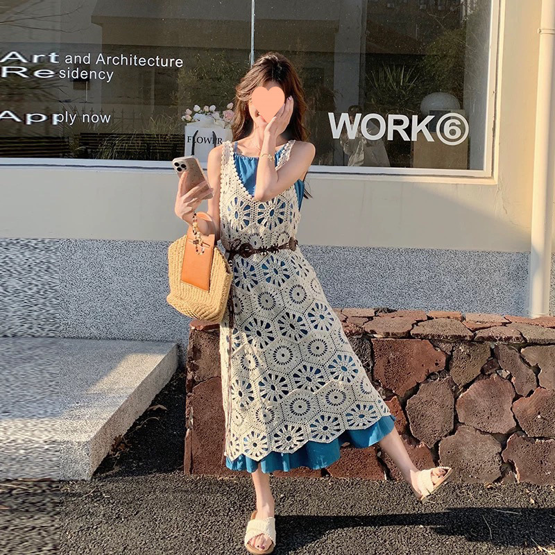 2025年夏の新作レトロボヘミアンレースガーゼスカートスーツは大きいサイズの太ったMMでも着用できます