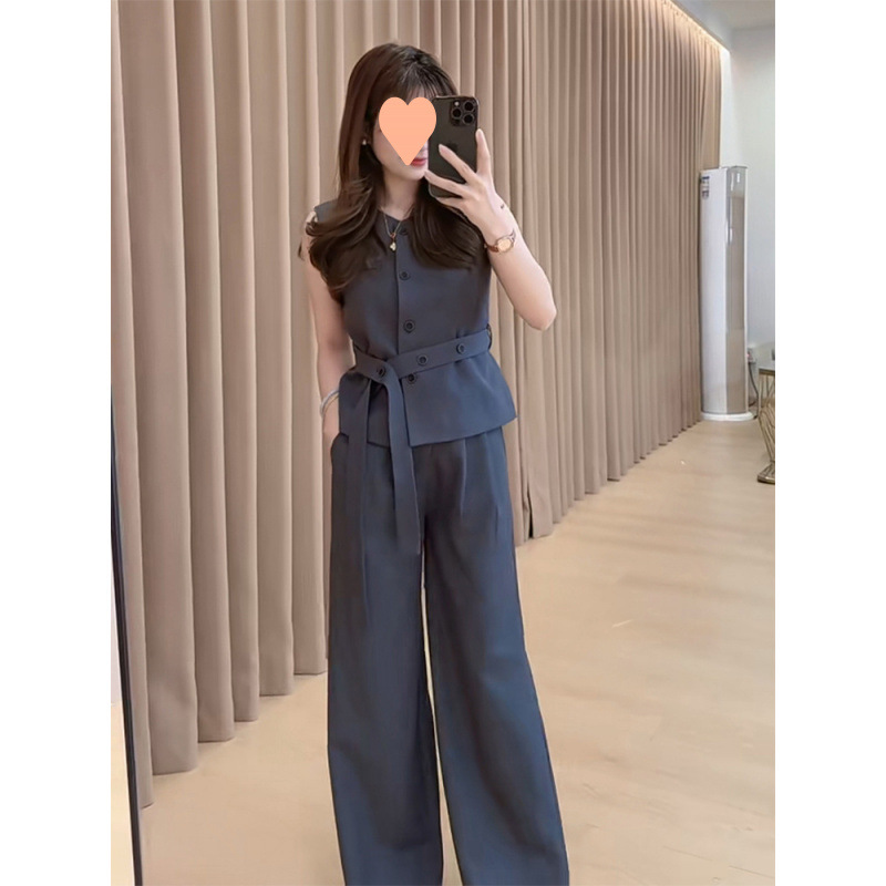2025 新しい夏スタイルのスマートな気質、軽い高級感とハイエンドの小さな香りのグレーベストワイドレッグパンツ女性用プロフェッショナルスーツ